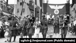 Глядя на такие случаи, историки напоминают о фашистской оккупации Чехословакии в 1939 году. Тогда судетские немцы тоже заявили о «воссоединении с матерью-Родиной». Они выходили на улицы с цветами, свастикой и фотографировались с солдатами армии Гитлера.