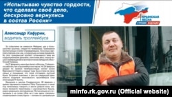 Вскоре после этих событий Александр Кафурин получил повышение – он стал командиром взвода «народного ополчения» и обеспечивал безопасность на избирательных участках во время «референдума» в марте 2014 года. После российской аннексии Крыма он вернулся на работу в троллейбусный парк Симферополя.