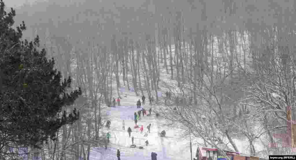 Корреспондент Крым.Реалии прогулялся по заснеженному Ангарскому перевалу и запечатлел все происходящее на фото.