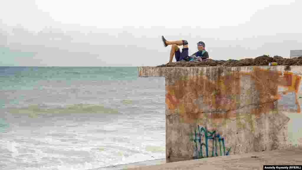 Народ по-разному созерцает морскую стихию с набережной